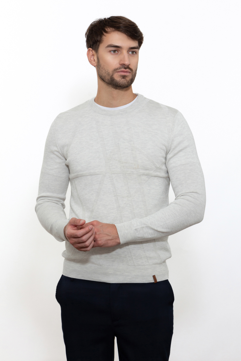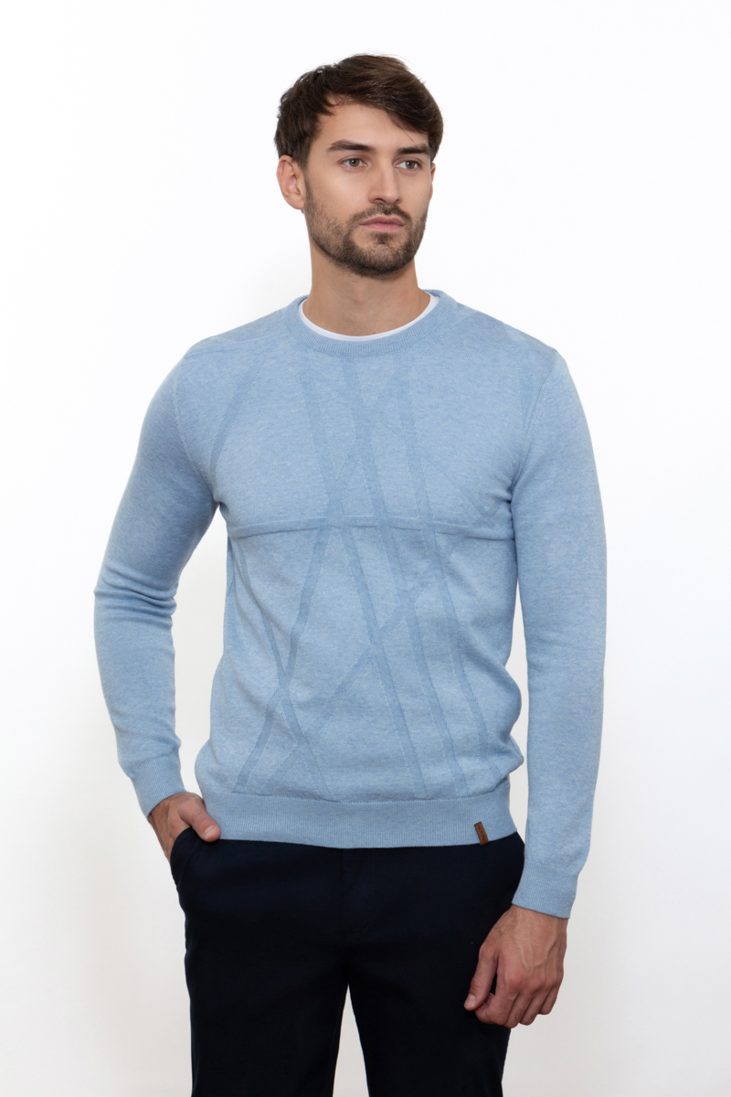 Эффектный мужской джемпер узорной вязки. Джемпер можно носить поверх рубашки или самостоятельно. С джинсами получится образ в стиле casual, с классическими брюками, чиносами – более офисный вариант. Модная цветовая гамма привлекает внимание. В модели сочетаются изысканность и комфорт.
