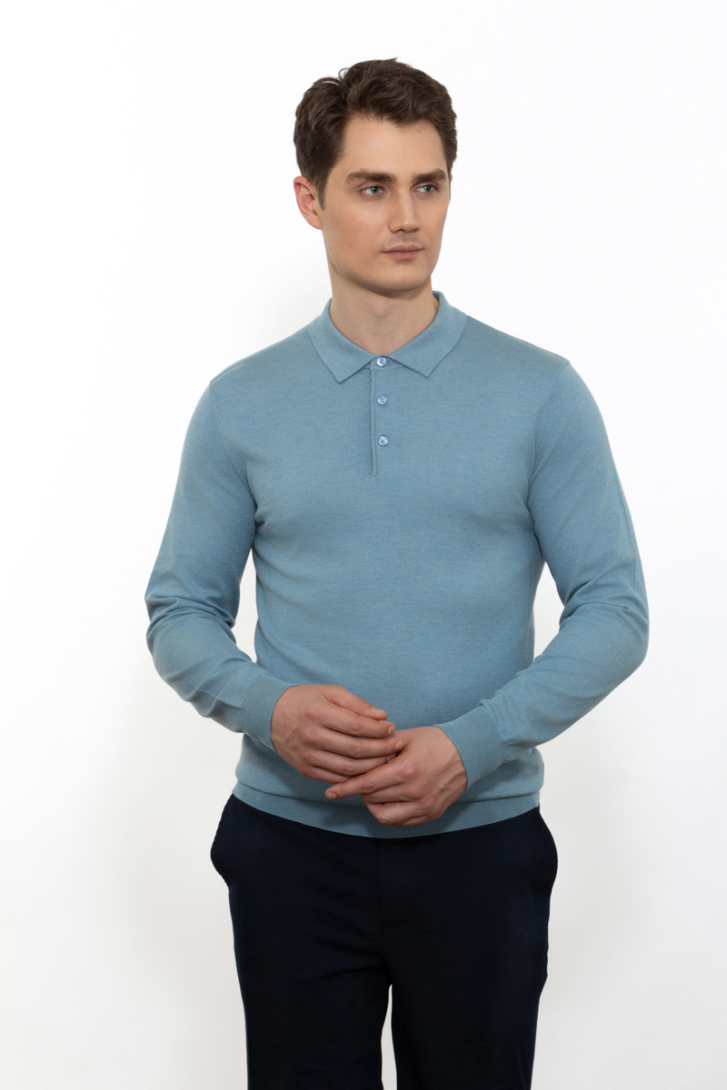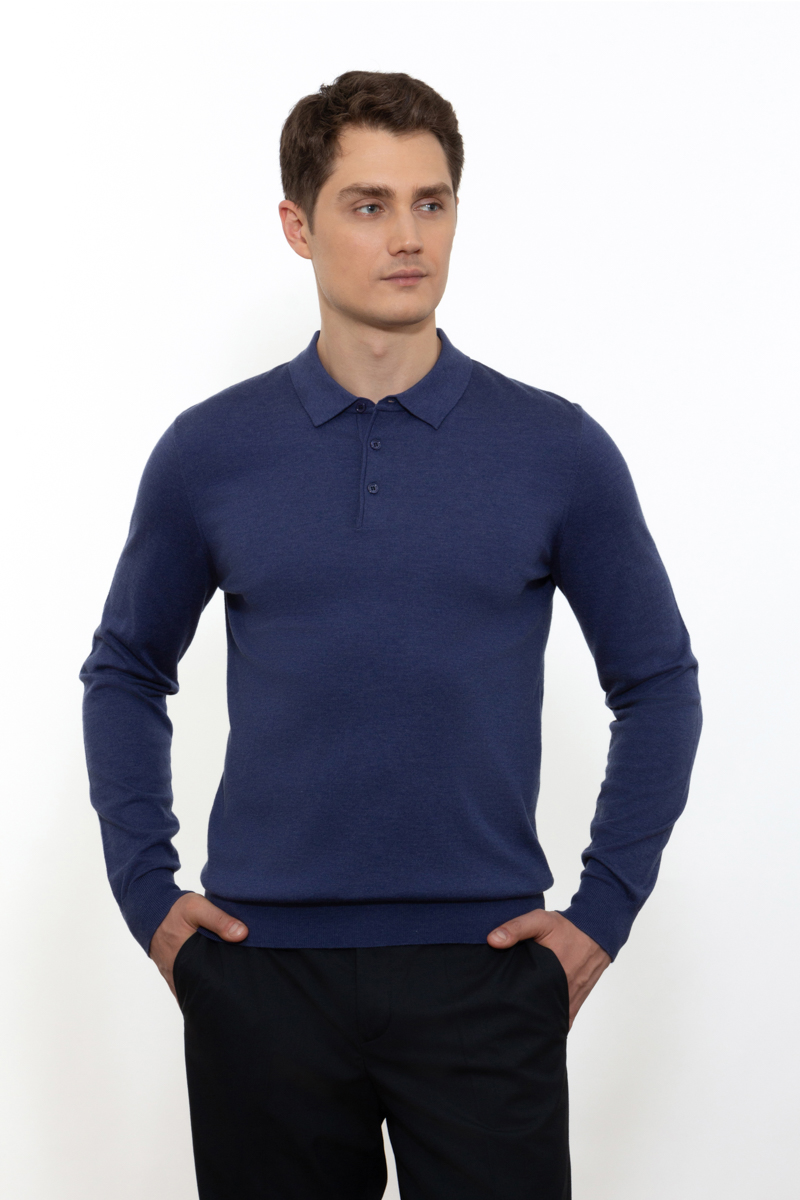 Модный мужской джемпер с классическим вырезом и декоративным отложным воротником. Данная модель идеально подойдет для повседневного casual и классического образов, украсит и освежит Ваш гардероб.